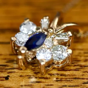 - 14k yellow gold, .03ct white diamond, turquoise.