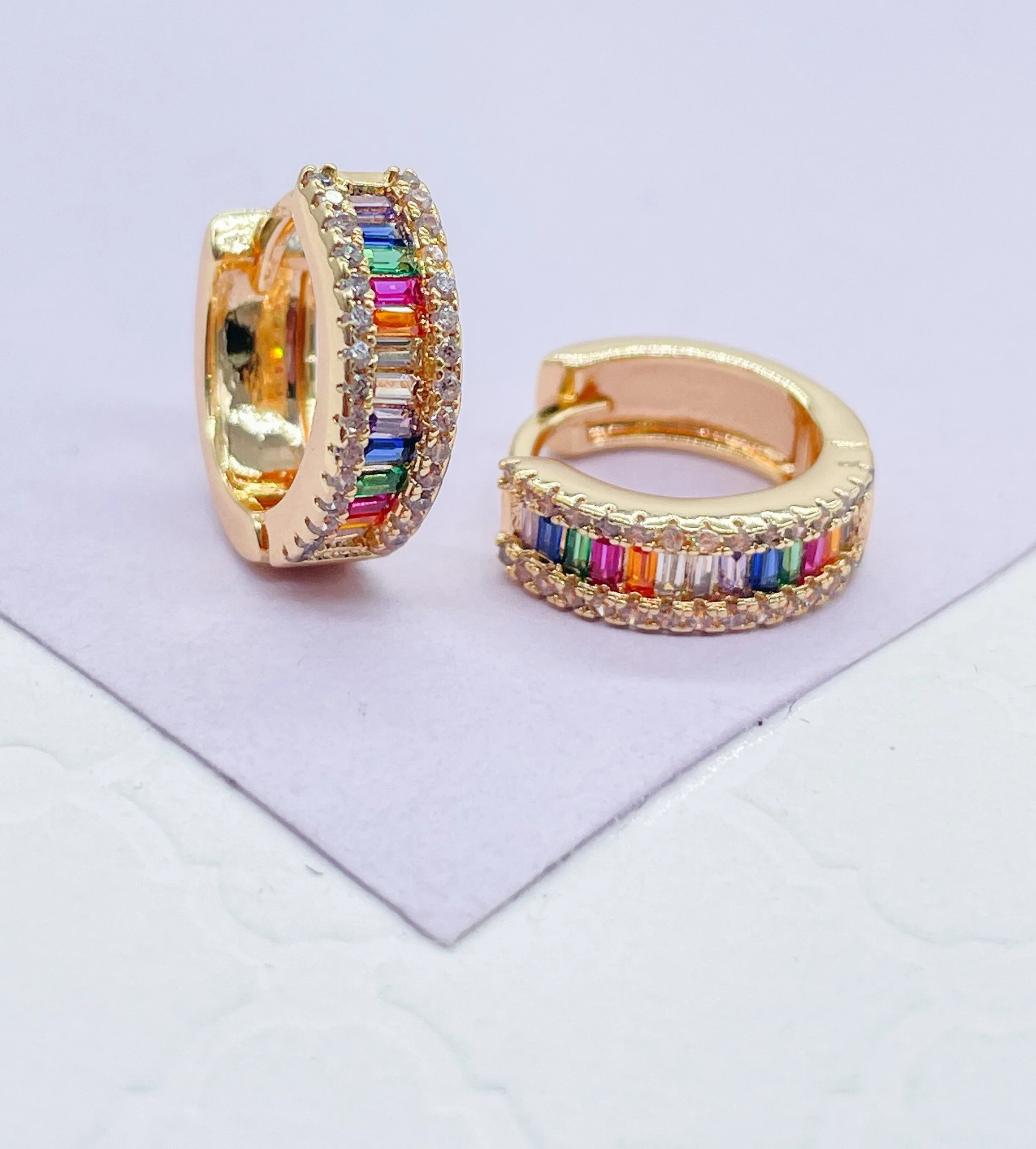 18k Gold Filled Colorful Baguette Stone Huggie Earring