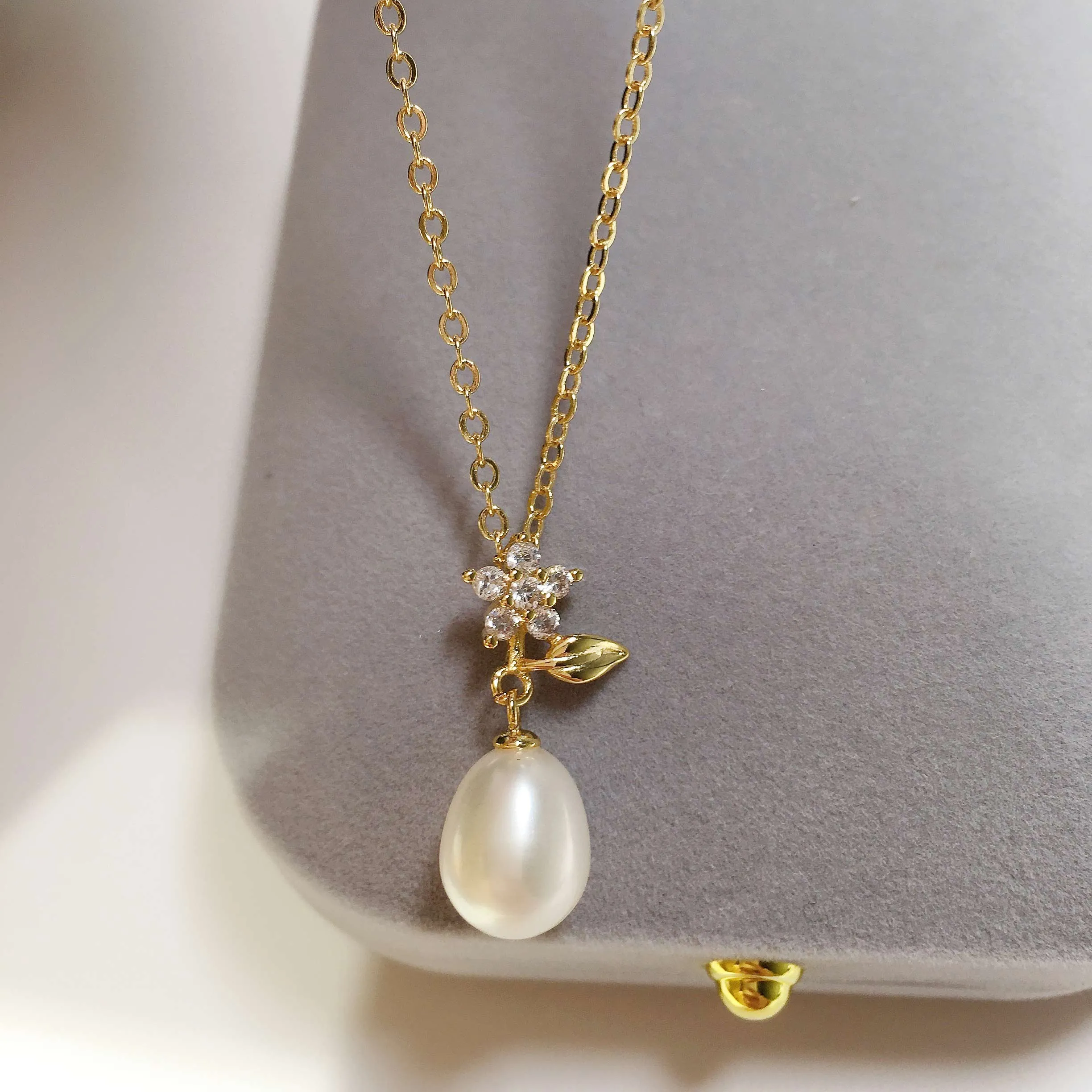 Pearl Necklace-18K Gold Plating Pearl Pendant Real Natural Freshwater Pearl Necklace Flowers Leaves Silver Gold Color Jewelry Women