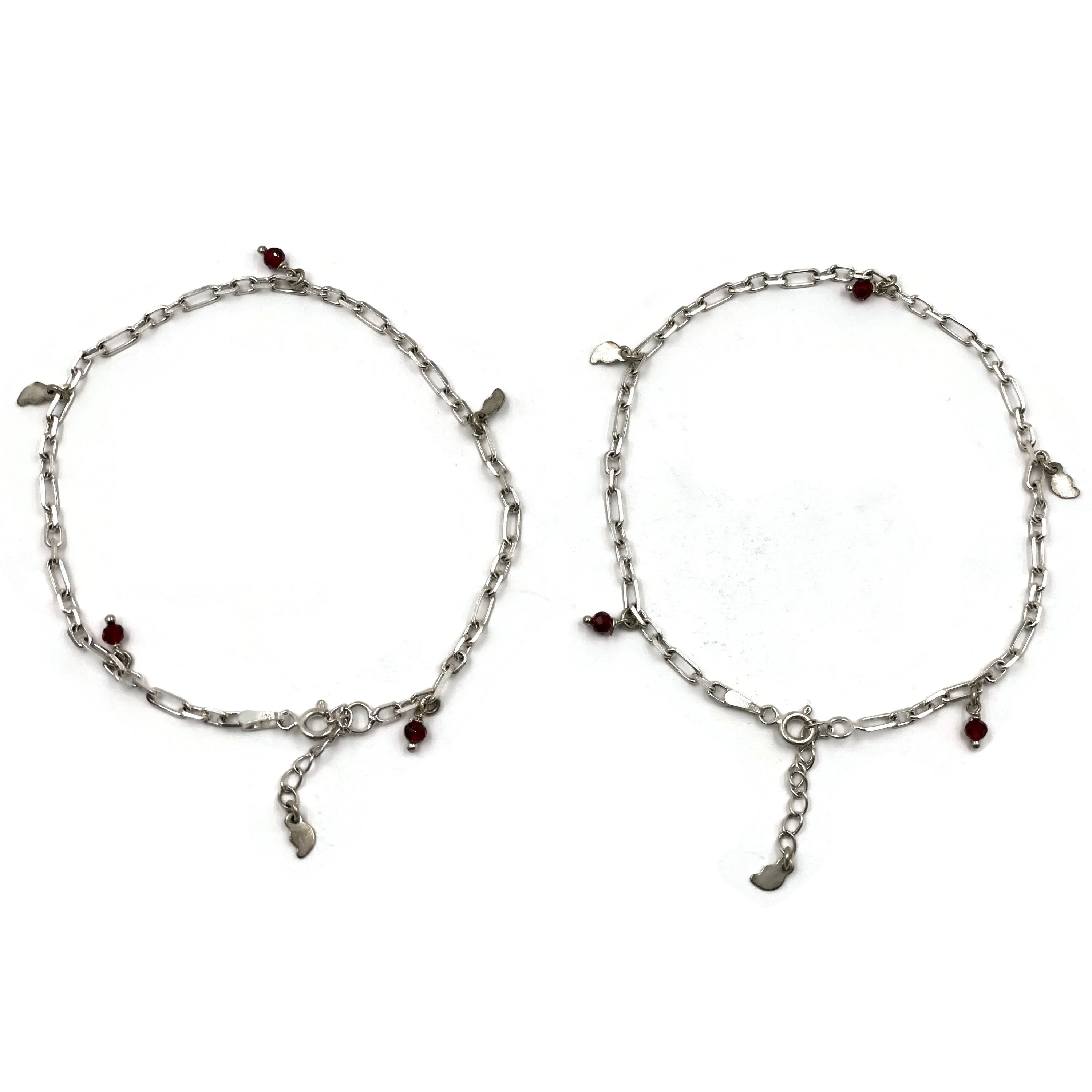 | Description | 925 Sterling Silver Anklet is weaved with Silver Chain & colorful Glass beads and available as pair. Anklet Silver Purity is 92.5% . Hand Made with high quality Silver chains and glass Beads. Adjustable anklets has 1.0 inch length extension for Flexibility. SOLD & PRICED PAIRS ONLY. |