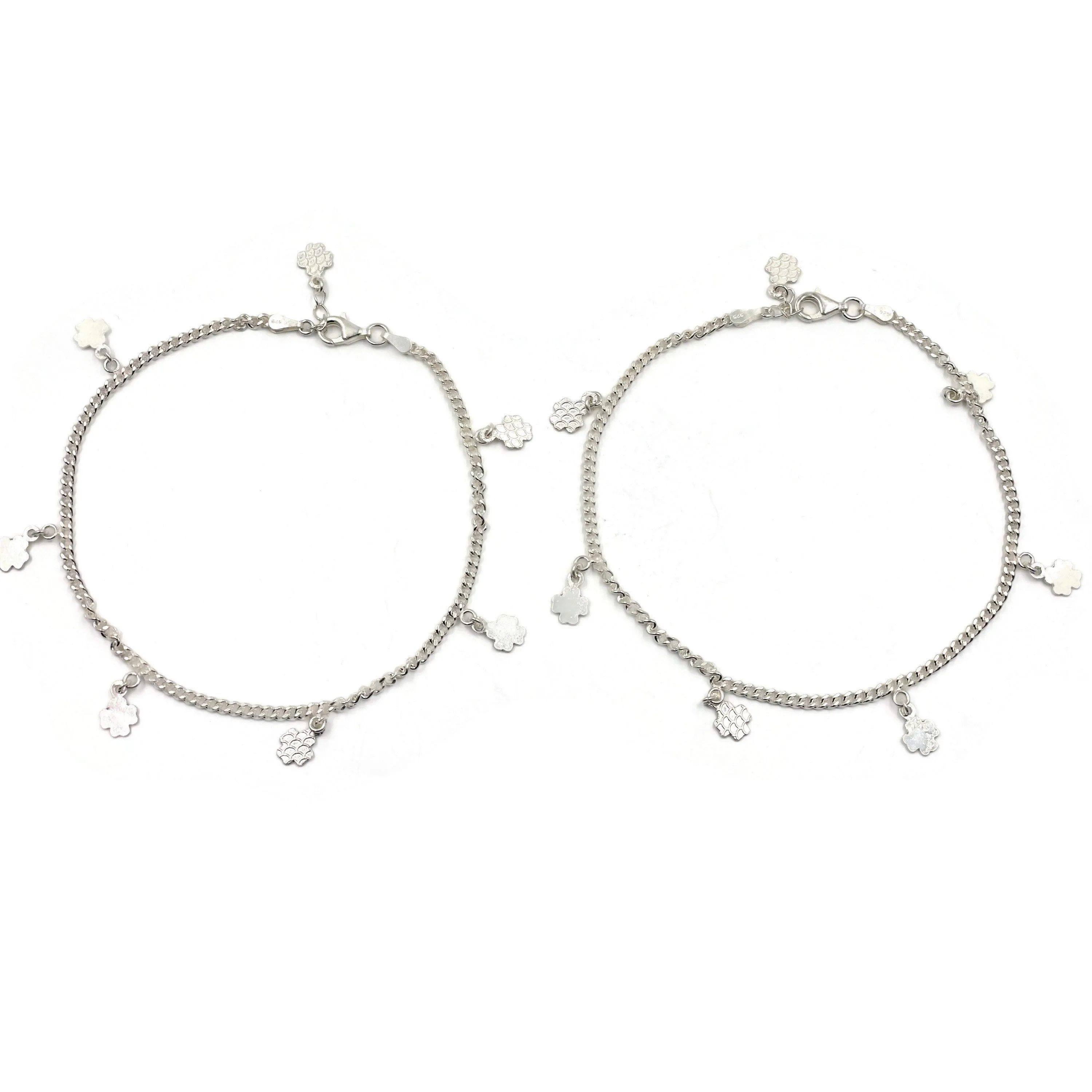 | Description | 925 Sterling Silver Anklet is weaved with Silver Chain & colorful silver beads and available as pair. Anklet Silver Purity is 92.5% . Hand Made with high quality Silver chains and Silver Beads. Adjustable anklets has 1.0 inch length extension for Flexibility. SOLD & PRICED PAIRS ONLY. |