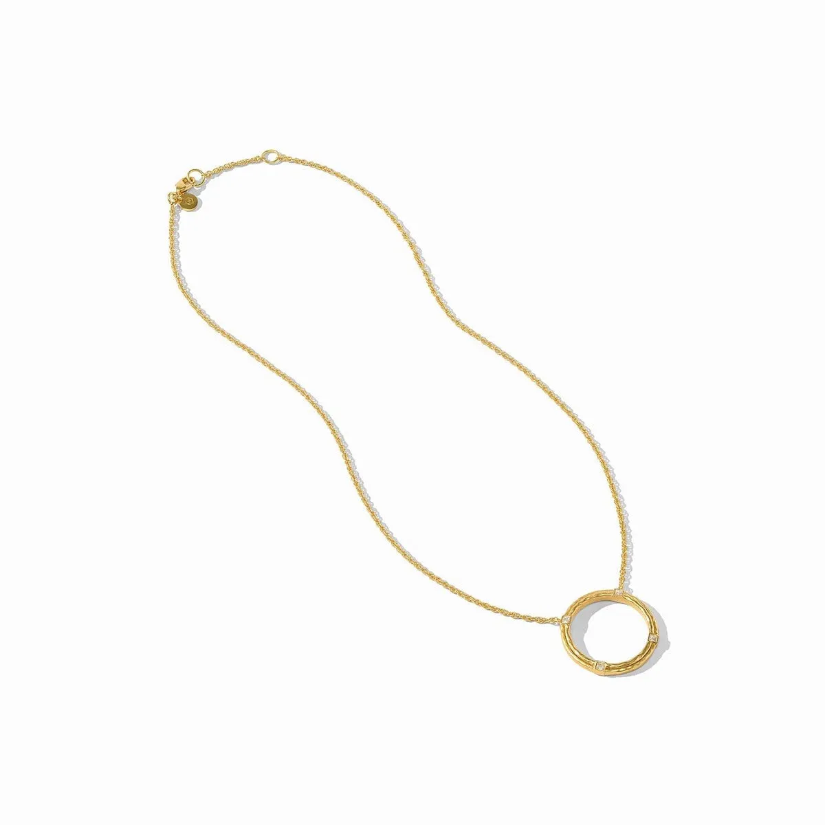 A delicate orbital necklace featuring four glittering princess cut CZs suspended from a fine rope chain.