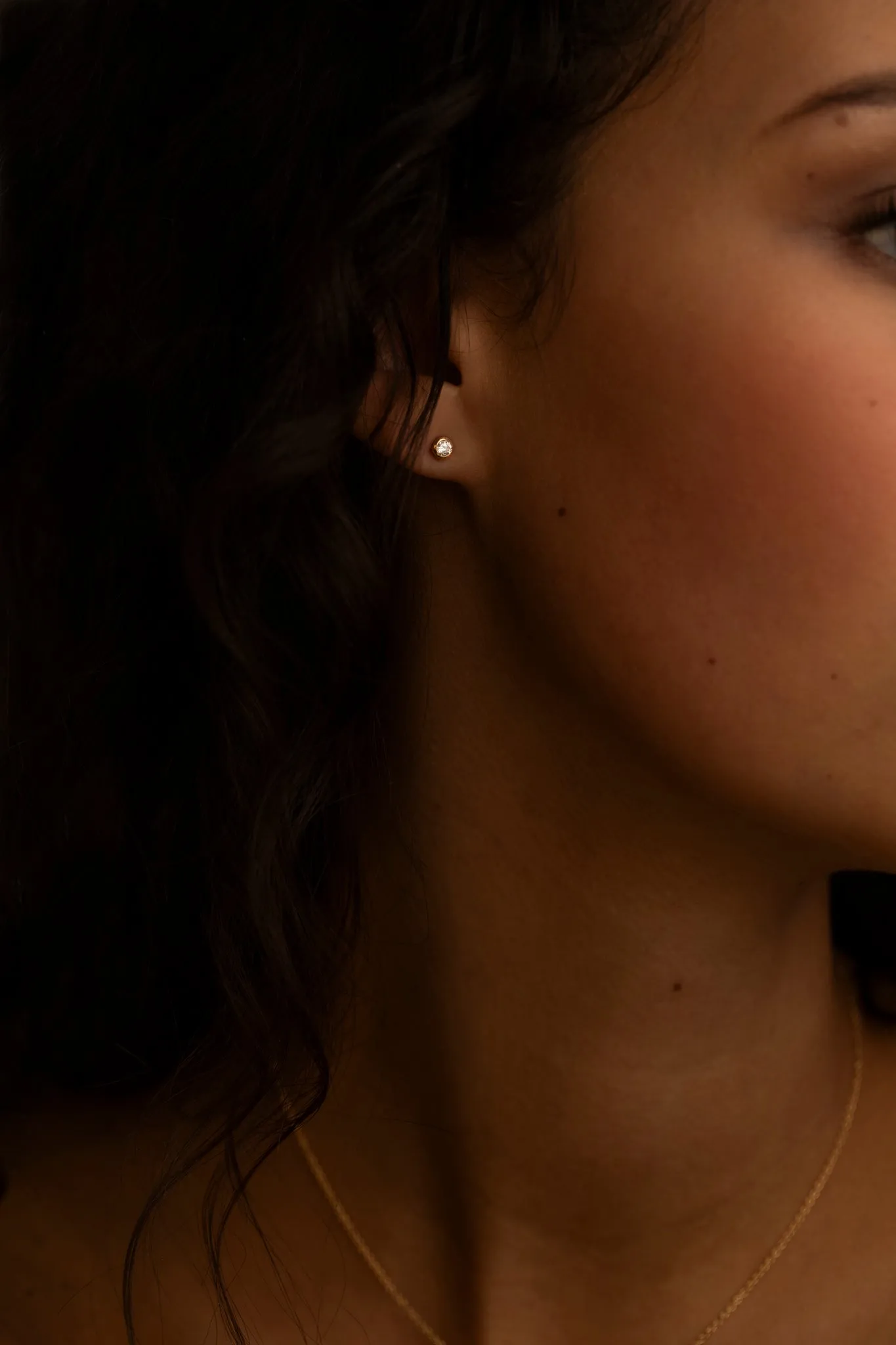 Modern and effortless, our Bezel Studs give a luxurious and sleek feel to the classic diamond studs. Set in solid 18-karat gold, the Bezel Studs are comfortable for everyday wear and will last beautiful for many years to come. These diamond studs are gentle to the skin and a perfect choice if you’re thinking of investing in your first diamond jewelry.