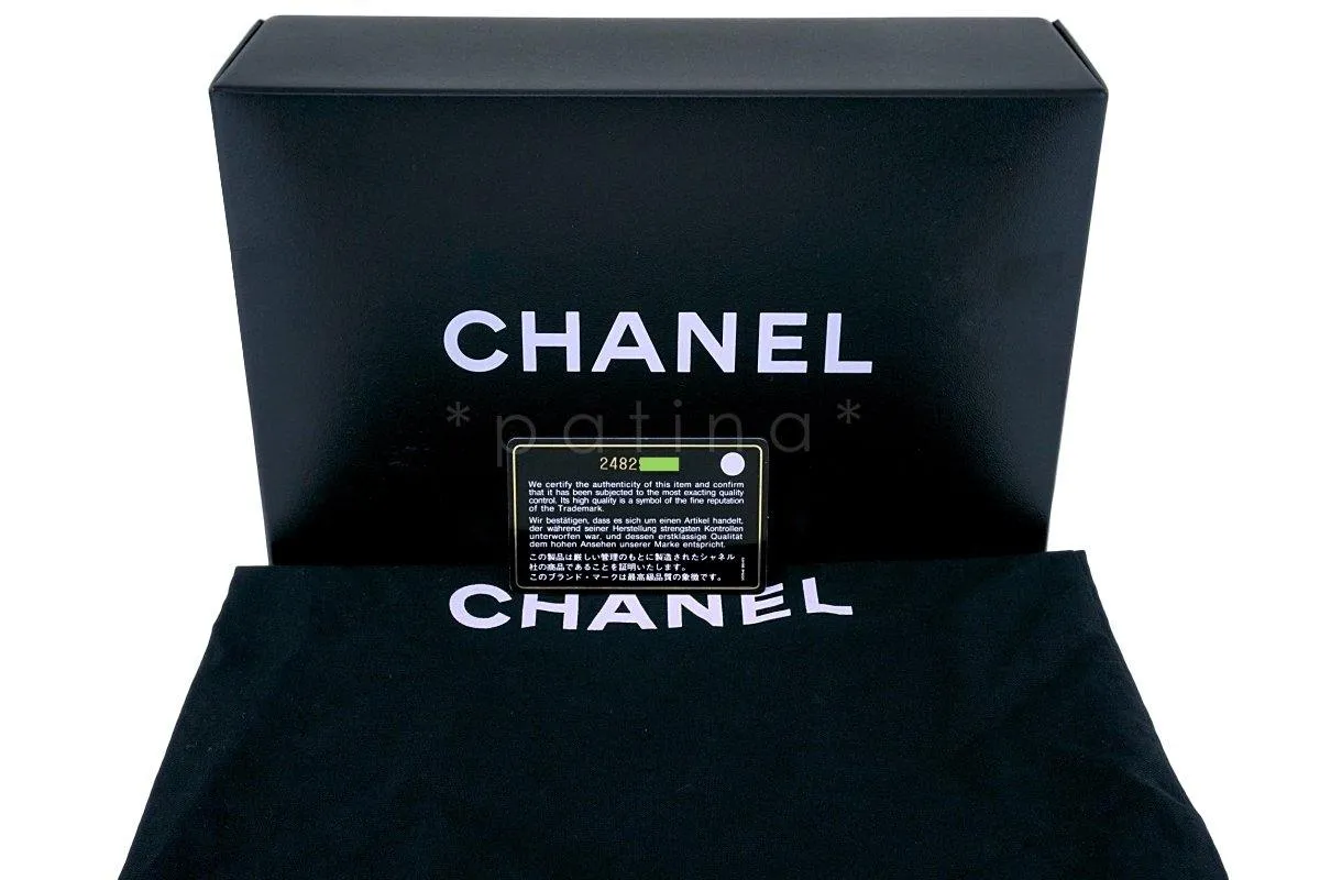 This item is in pristine condition with very few, if any, signs of use. Corners are clean with no signs of rubbing or scuffing. Brushed gold hardware is deliberately clean. Pearl studs remain intact and shiny and in place. Interior is clean. Protective adhesive remains on turnlock clasp. See photos for details.