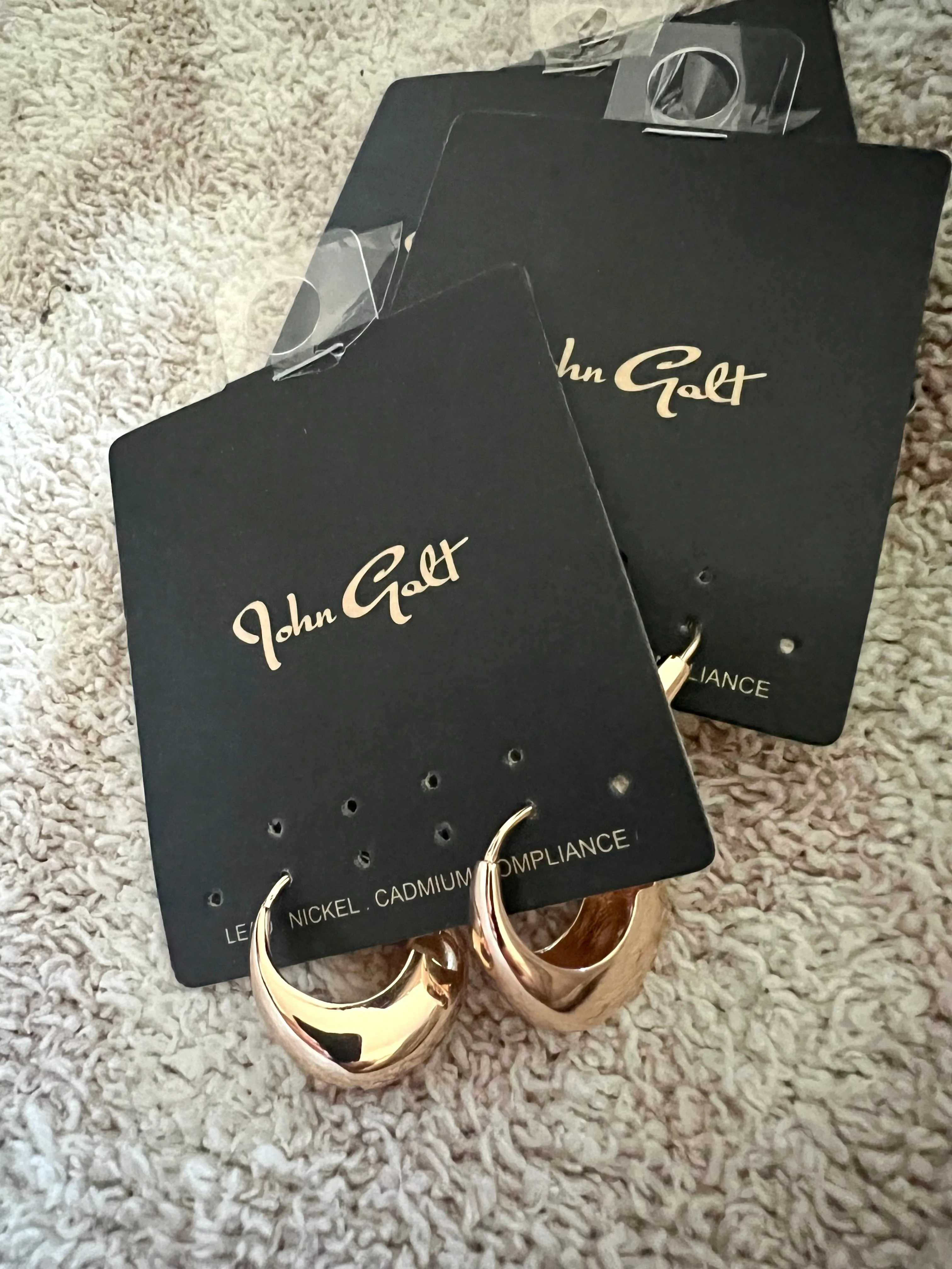 For the gold girlies! This style features chunky gold hoop earrings. The perfect classic Jewlery staple. Snap closure.