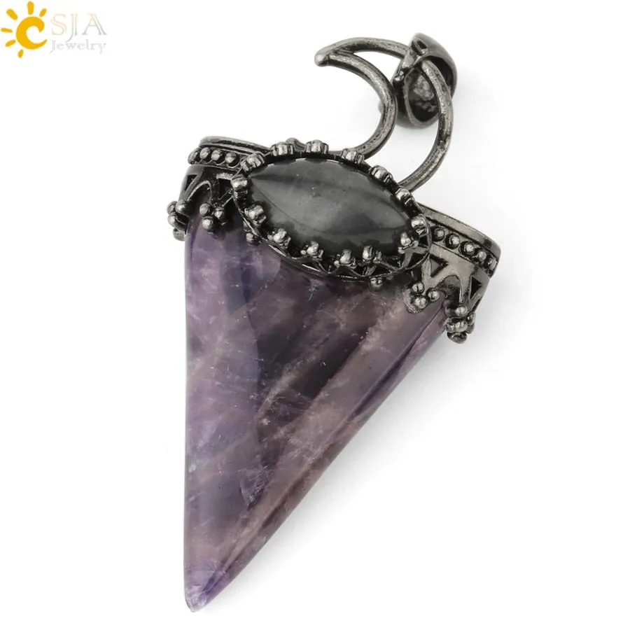 Pendant Feature: Natural Stone , Triangle , Antique Silver Plated , Crown , Moon