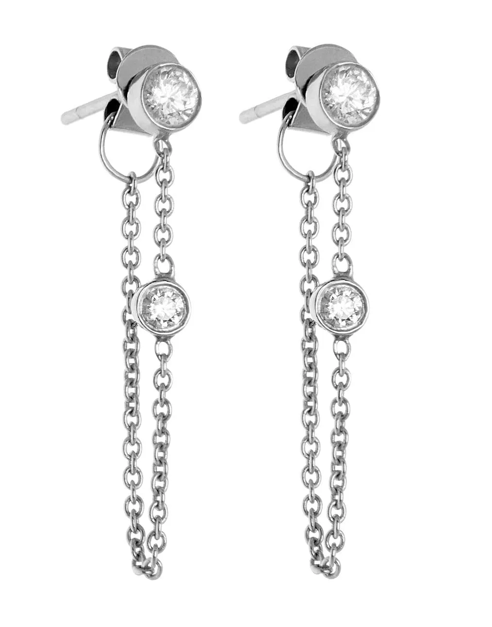 Devon Woodhill deluxe classic chain earrings. Double-diamond bezel-set chain loop earrings that are elegant, yet subversive. Perfect for everyday wear.