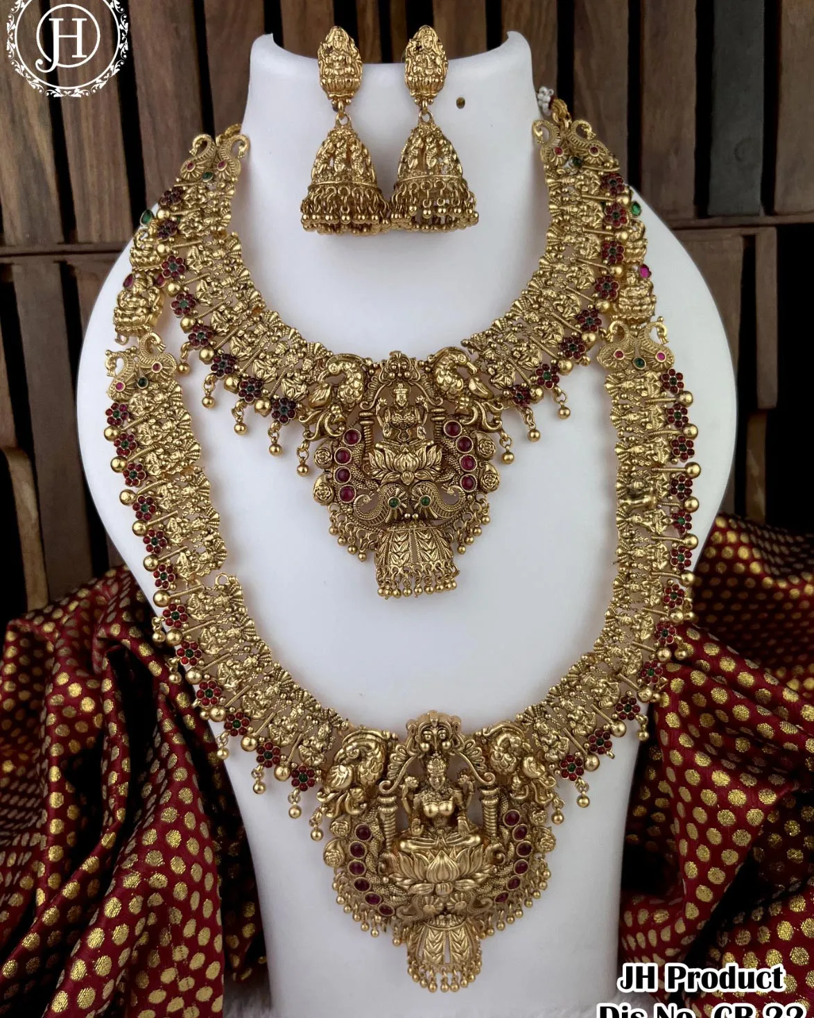 CONTENT: Necklace In Matte Gold Finish With Earrings (as shown in the image)