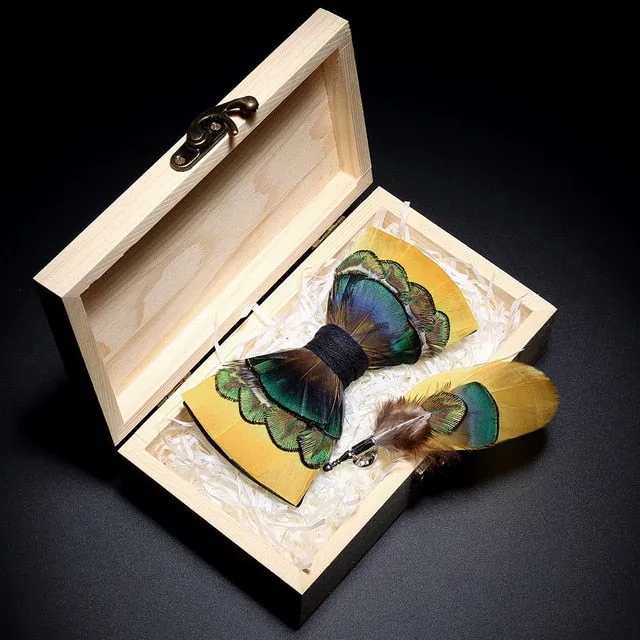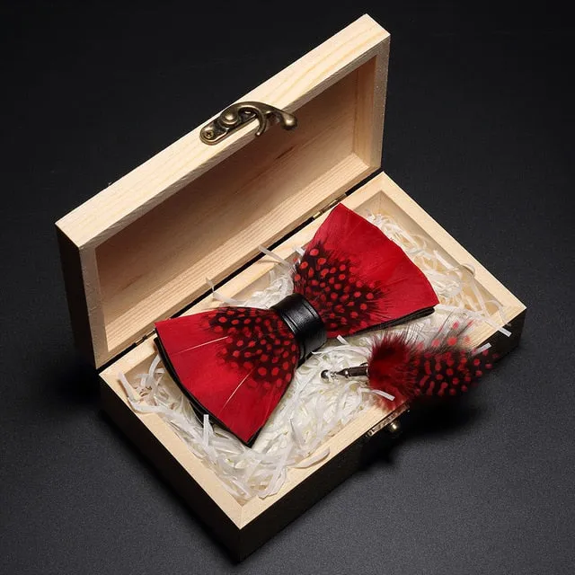 If you believe its true that "birds of a feather, flock together" well then you are sure to agree that these 55 different handmade feather bowties and brooches are an exquisite combination. Who would of thought feathers and bowties would be so regal and stylish. Full of color and made from peacock, guinea fowl, owl, pheasant and goose feathers, these bowties will make you the focus of attention in a crowded room. Take a stance and standout with these beautiful bowties.