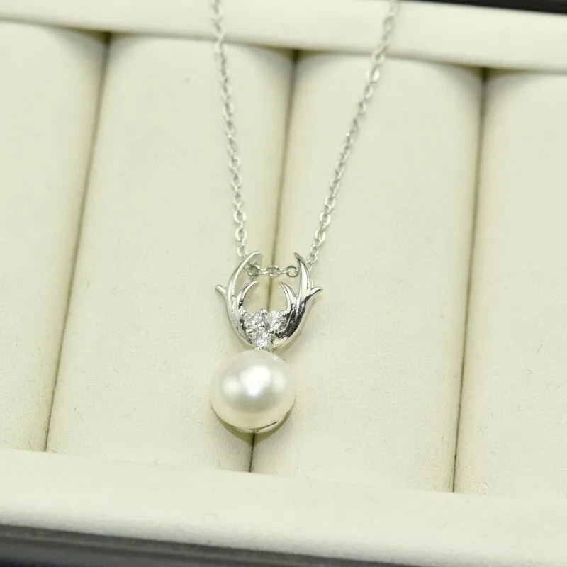 Pearl Necklace-Fine Jewelry Pearl Necklace Natural Freshwater Pearl Deer Shaped Pendants 925 Sterling Silver Jewelry For Women