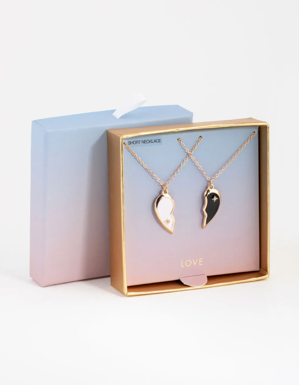 This necklace set is perfect for two friends. It features two rose-gold toned necklaces that, together, form a yin-yang heart. Each necklace boasts a dainty, glittering star for extra sparkle!