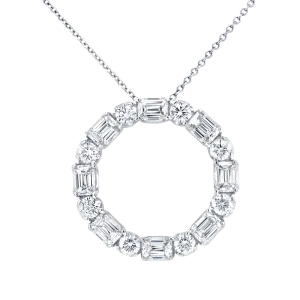 A rounded square gemstone sits atop a glittering trillion-cut gem, connected with two golden beads and dangling from a fine curb chain.