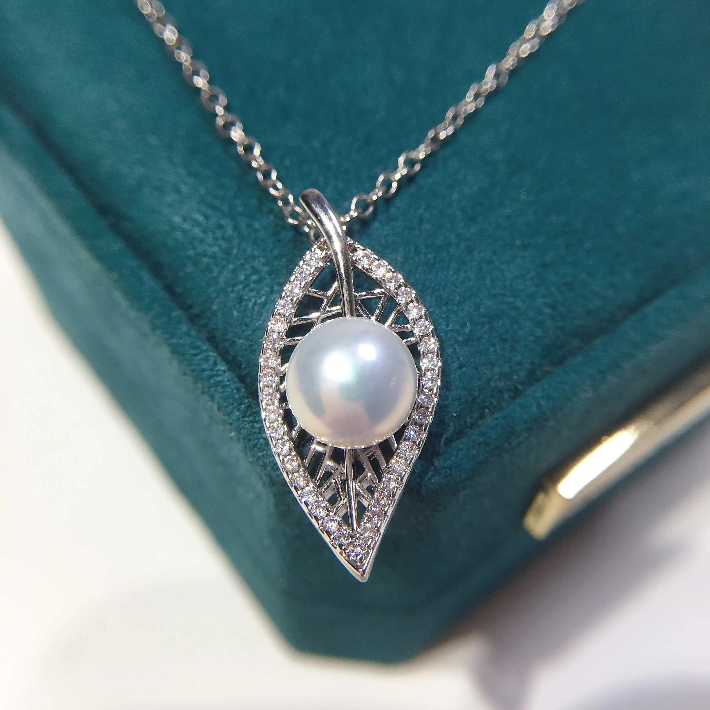 Pearl Necklace-Leaf Pearl Necklace 100% Real Freshwater Pearl 925 Sterling Silver Pendant Lady's Sexy Clavicle Chain Woman Gift