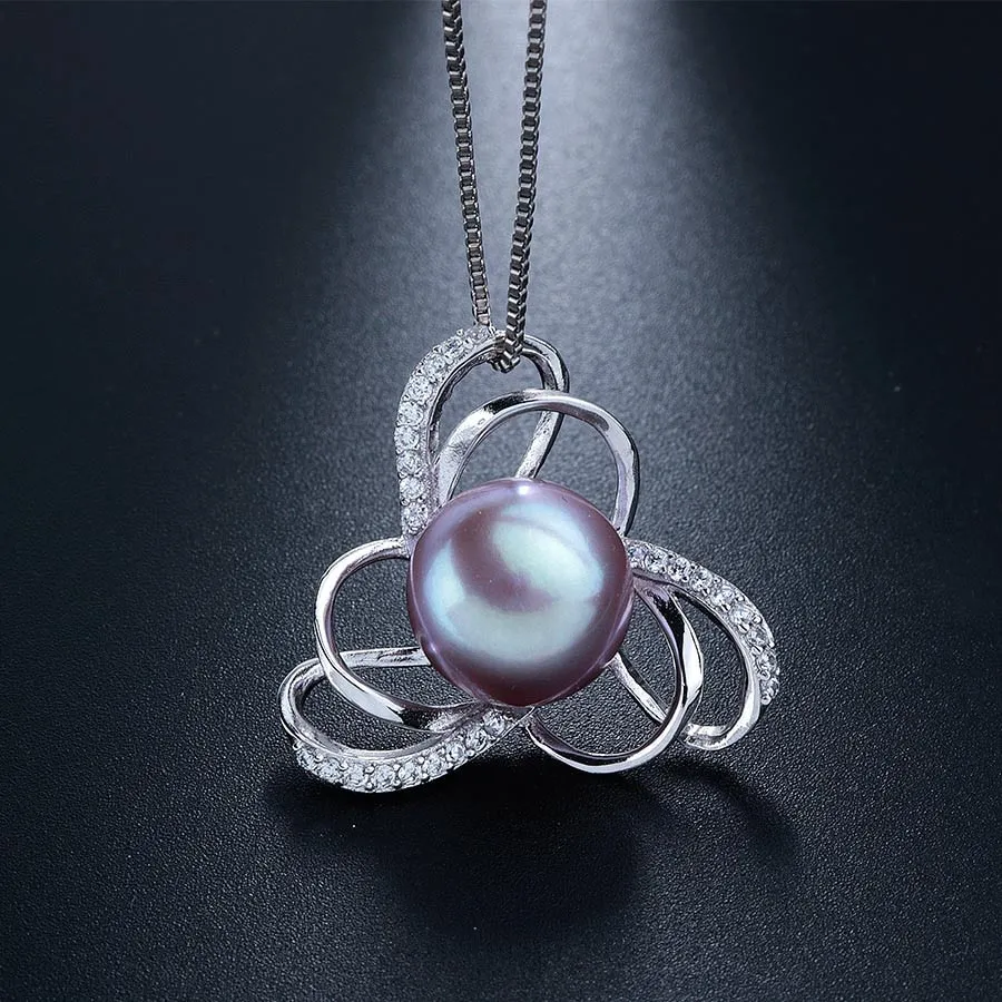 Pearl Necklace-Luxury Zircon Natural Freshwater Pearl Pendants For Women Fashion Silver 925 Real Pearl Flower Necklace Jewelry