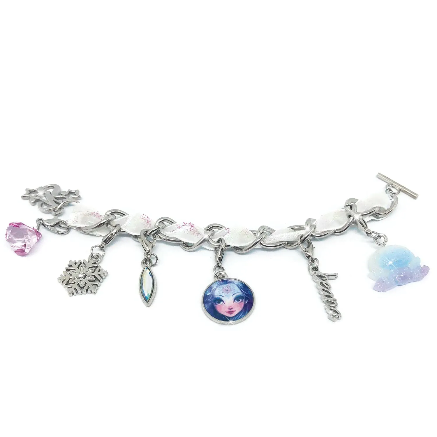 -Kit includes 7 unique charms, metal chain, sparkling ribbon, jewelry clasp, jump ring, 2 glue dots and color instructions.