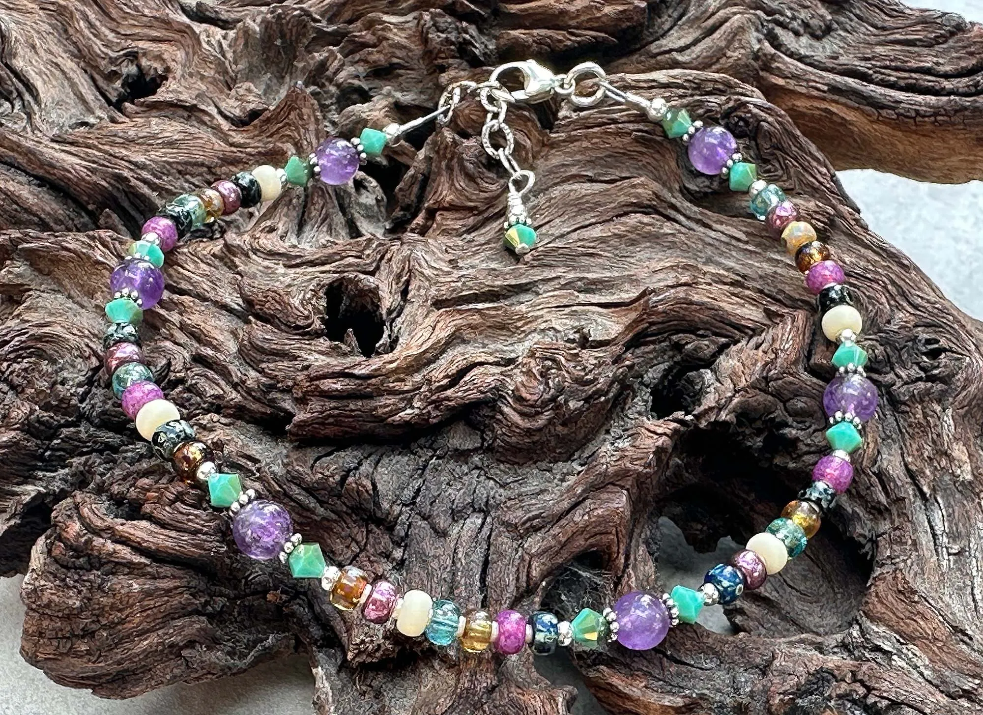 Glam up your ankles with this eye-catching amethyst gemstone anklet! Made of gemstones, glass beads, and sterling silver, it's sure to kick your look up to elegant (and envy-inducing!) levels. Plus, it's handmade with love so you know it's top-quality!
