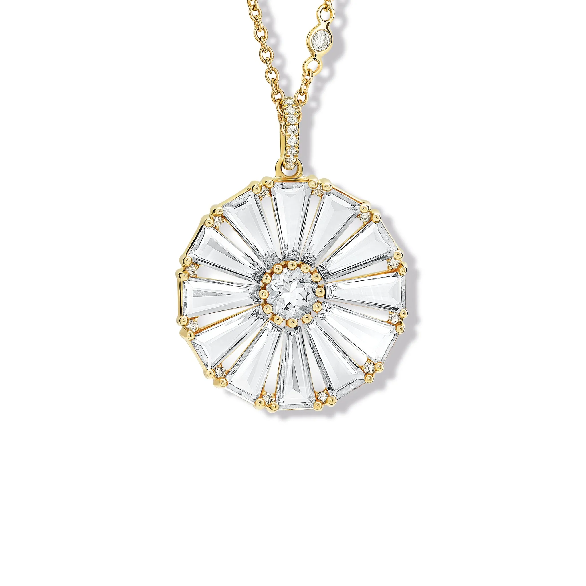 Roi Soleil Large Necklace Pendant Yellow Gold - White Topaz & Diamond