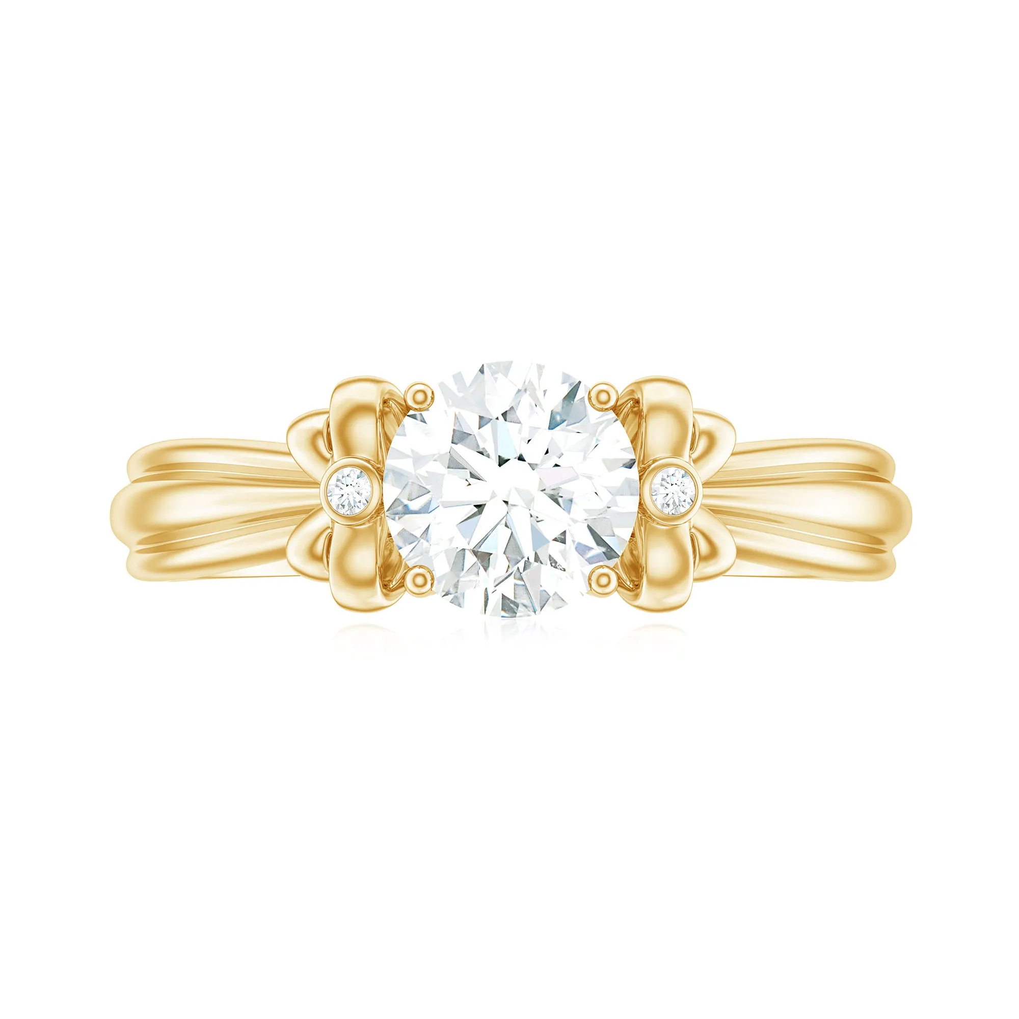 Timeless elegance meets modern charm in this Round Cut Moissanite Solitaire Engagement Ring with a captivating bow design.