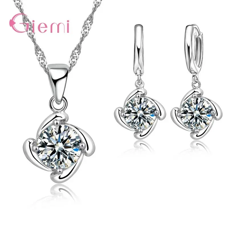 Elevate your elegance with our New 925 Sterling Silver Trendy Crystal Pendant Necklace and Earrings Set for Women. Perfect for anniversaries and special occasions, this fashion jewelry set makes a stunning gift.